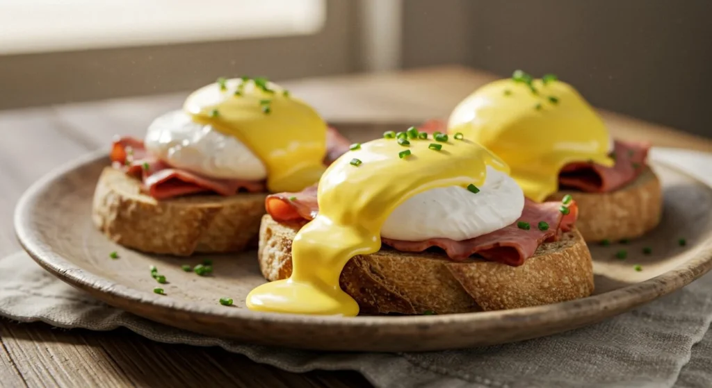 - Hvernig: Ristaðu sneið af súrdeigsbrauði. Toppaðu með sneið af góðri skinku eða beikoni, svo mjúksoðnu eggi (poached egg). Helltu svo ríkulega af heimagerðri hollandaise sósu yfir.