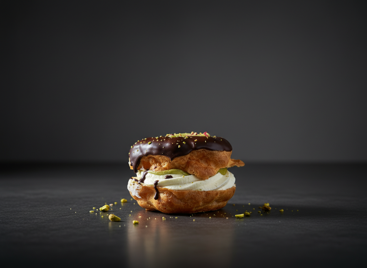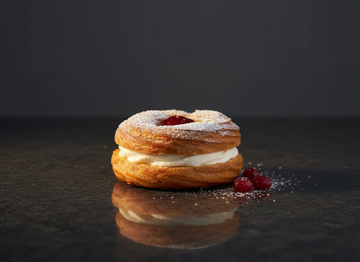 Við notum okkar rómaða vatnsdeig sem er létt, loftkennt og með þessa dásamlegu gylltu áferð. Innan í leynist nýþeyttur rjómi og úrval af sultum, karamellum og súkkulaði sem við höfum valið af kostgæfni.