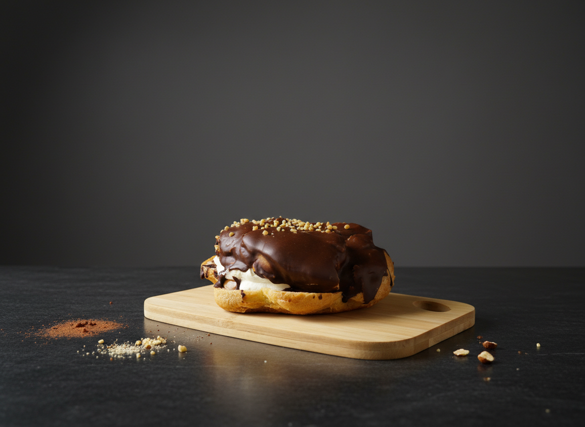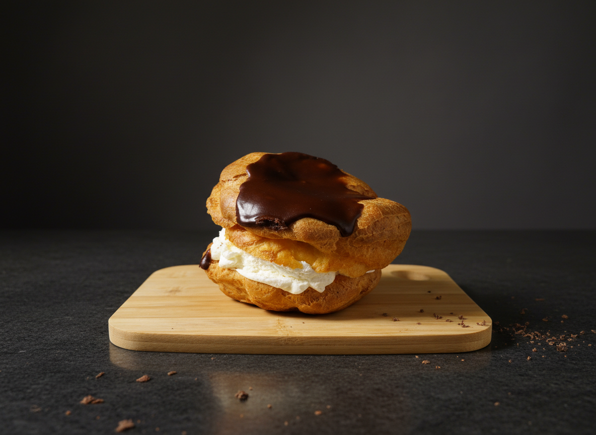 Vatnsdeigsbolla, rjómi, nutella toppað með súkkulaði.