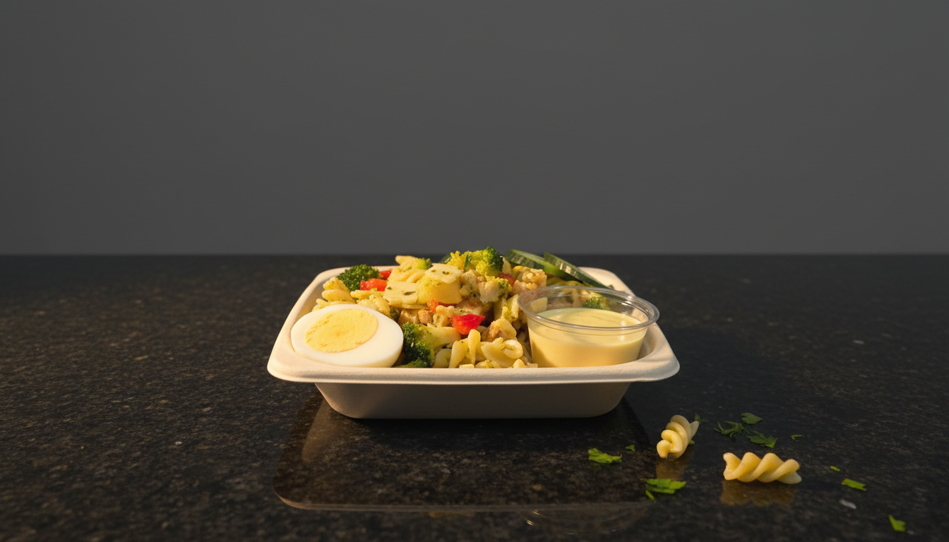 Ferskt pasta með grænu pestói, safaríkum kjúklingi og soðnu eggi sem umvefur hvern bita. Bragðgóð og matarmikil máltíð sem gleður.