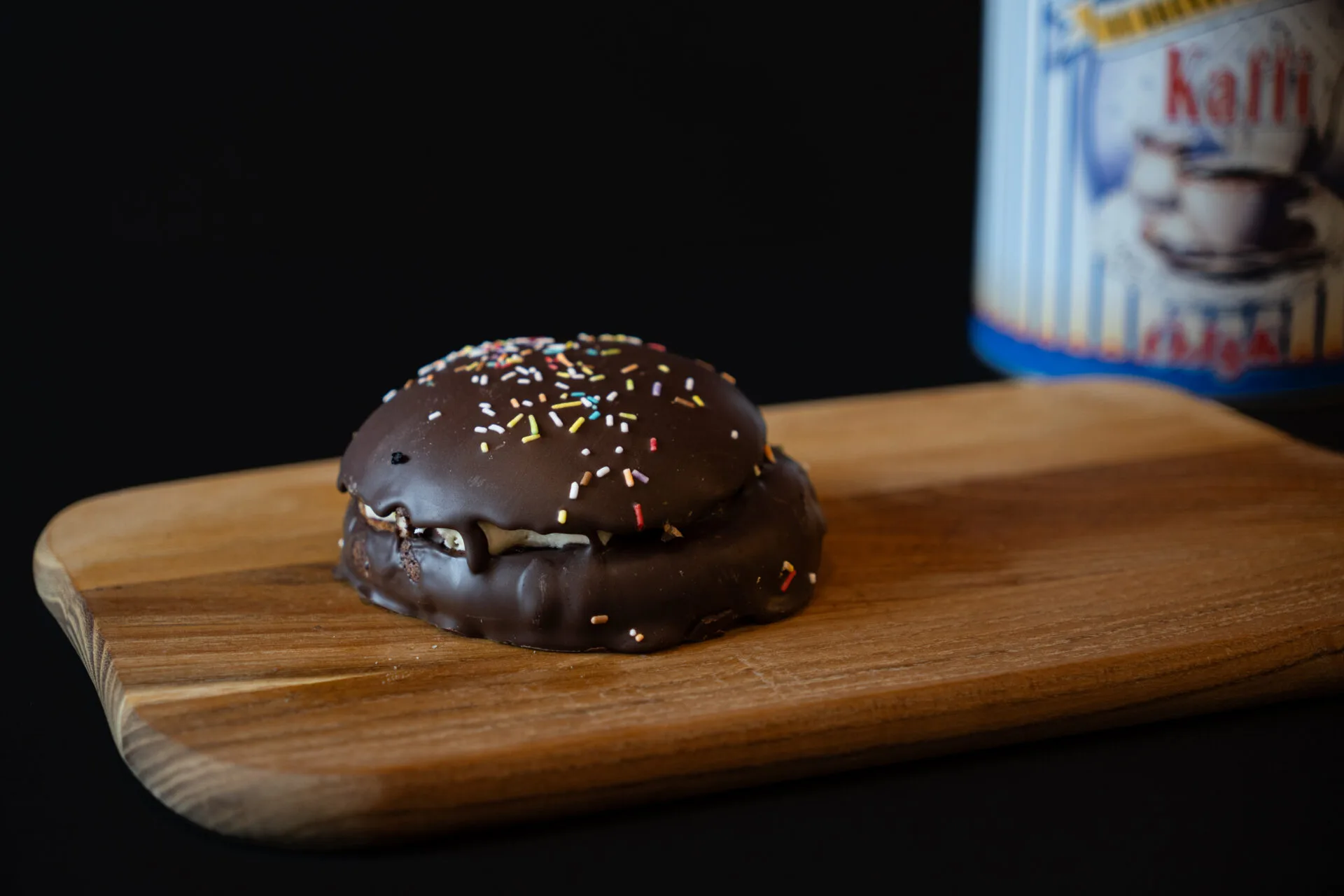 Ofan á þessari dásamlegu fyllingu er bollan hjúpuð með ríkulegu og glansandi gæðasúkkulaði. Brakandi súkkulaðihúðin bætir við spennandi áferð og djúpum keim sem fullkomnar sætleikann innanfrá. Hver biti er ferðalag fyrir bragðlaukana, blanda af mjúkri bollu, sætri fyllingu og ríkulegu súkkulaði sem kveikir gleði og minnir á góðar stundir.
