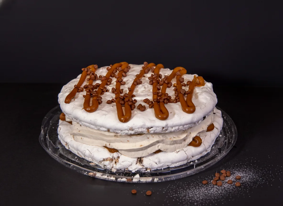 Stundum þarf maður bara að leyfa sér smá sælu, og þá er Karmellusæla okkar fullkomin kostur. Hún er okkar túlkun á fullkominni eftirréttarupplifun, þar sem hvern bita einkennir ástríða fyrir gæðum og ómótstæðilegu bragði. Við byrjum á léttum og loftkenndum marengsbotni, búnum til úr eggjahvítum og sykri, sem bráðnar í munni og veitir grunninn fyrir þessa dásemd.