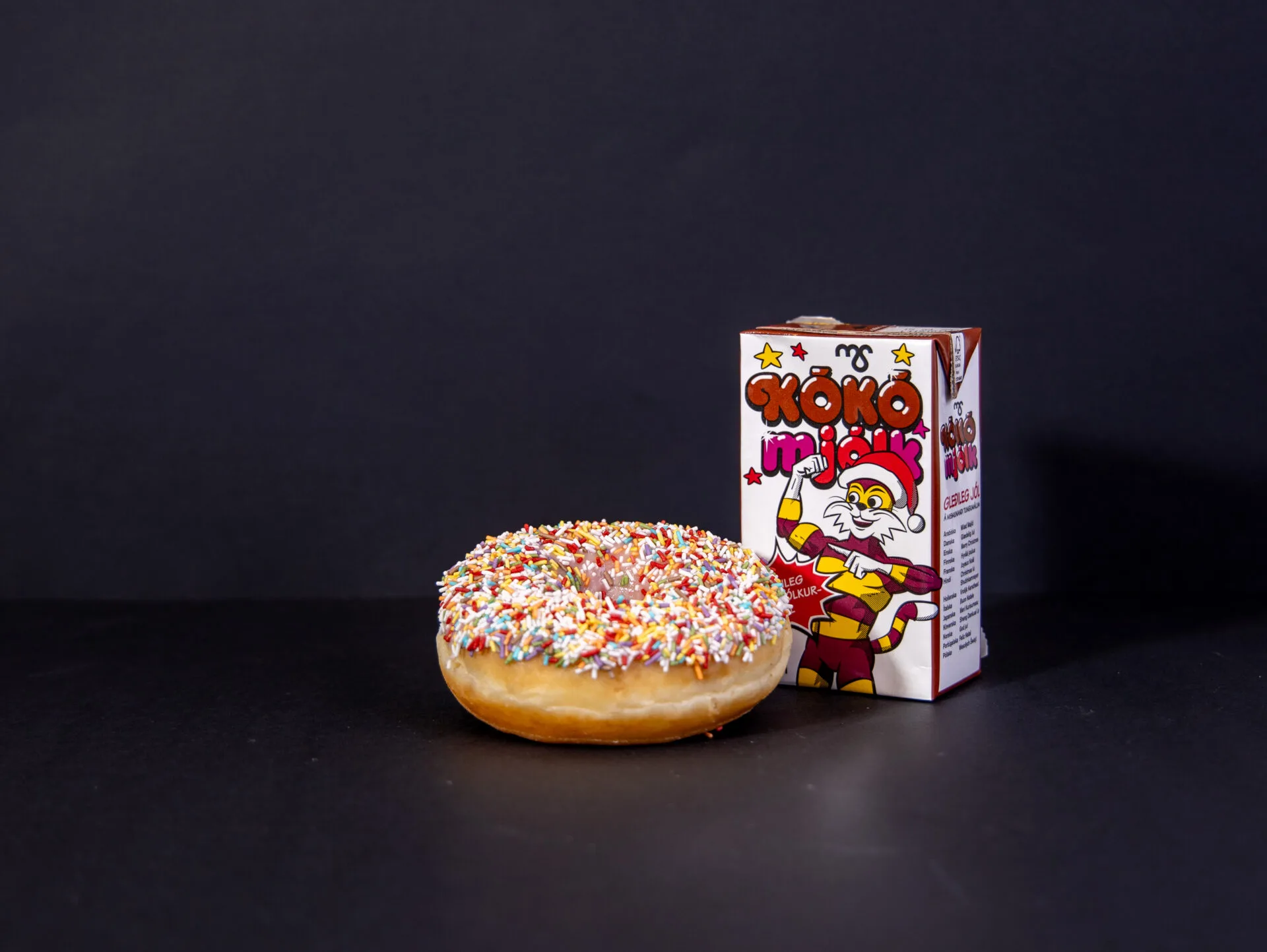 Gefðu gleði og hlýju með klassískum kleinuhring og ískaldri kókómjólk frá Almar Bakara – fullkomið augnablik fyrir alla aldurshópa.
