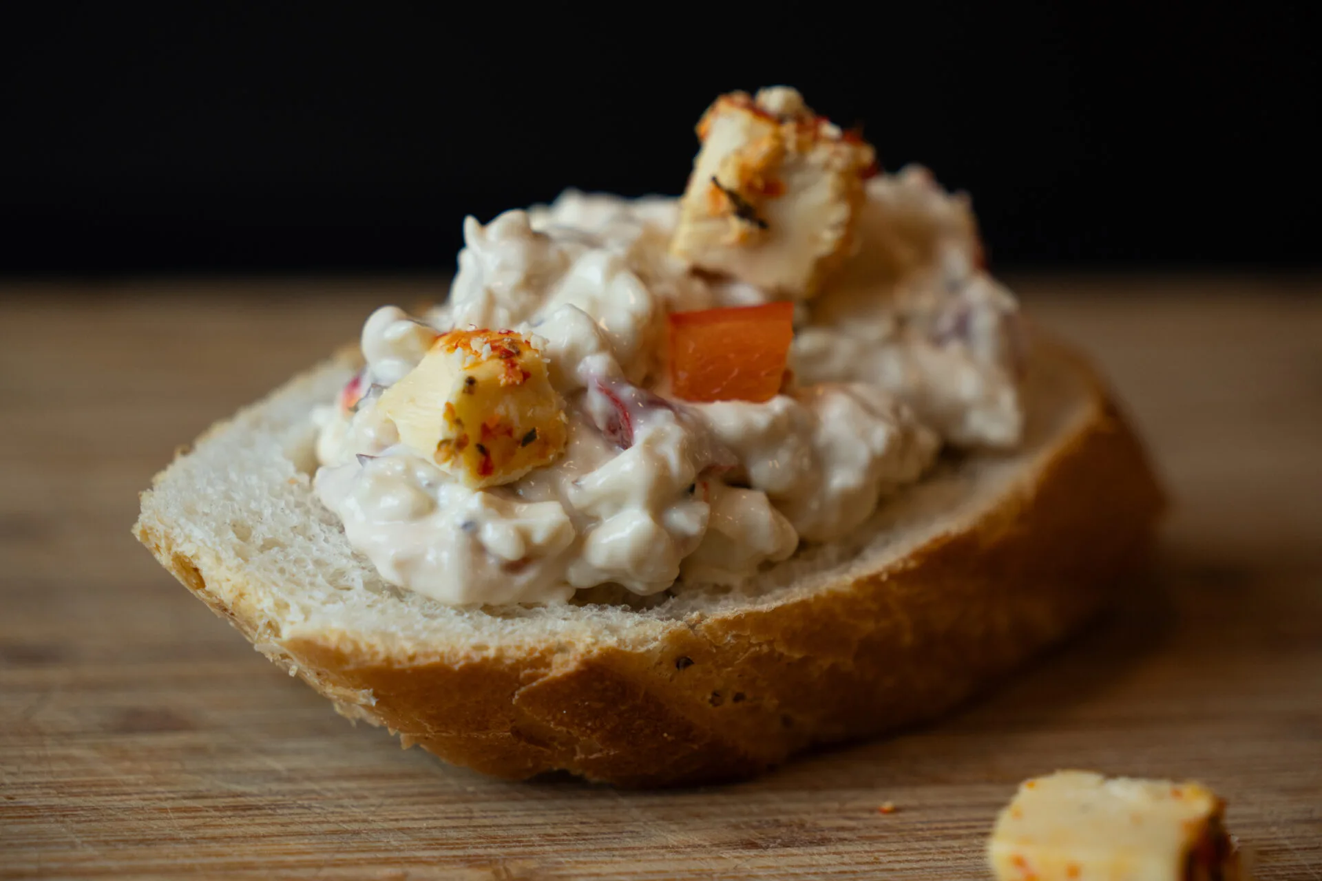 Með silkimjúkri áferð og ríkulegu ostabragði er salatið okkar fullkomið við öll tækifæri. Það er dásamlegt á samloku, sérstaklega með einu af ljúffengu brauðunum okkar, eða sem veislubiti með stökku kexi. Við notum einföld en vönduð hráefni til að tryggja heiðarlegan og góðan smekk, alveg eins og hefð er fyrir.