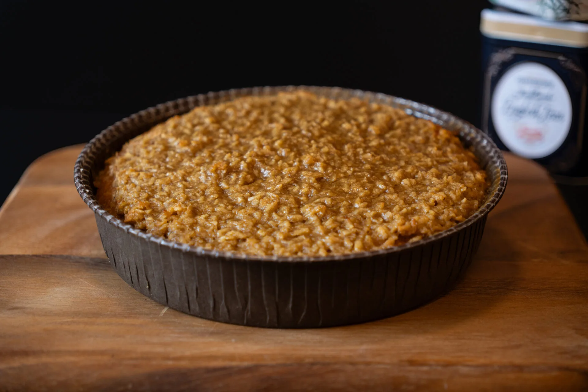 Sjónvarpskakan er meira en bara kaka; hún er hluti af íslenskri menningu, minning um notalegar stundir og fjölskyldusamveru. Kakan okkar er bökuð af ástríðu eftir gömlum og góðum uppskriftum, sem tryggir þér þá ekta upplifun sem þú manst eftir. Botninn er léttur og mjúkur, fullkominn grunnur fyrir ríkulega og gullna karamellu- og kókosfyllinguna sem liggur ofan á.