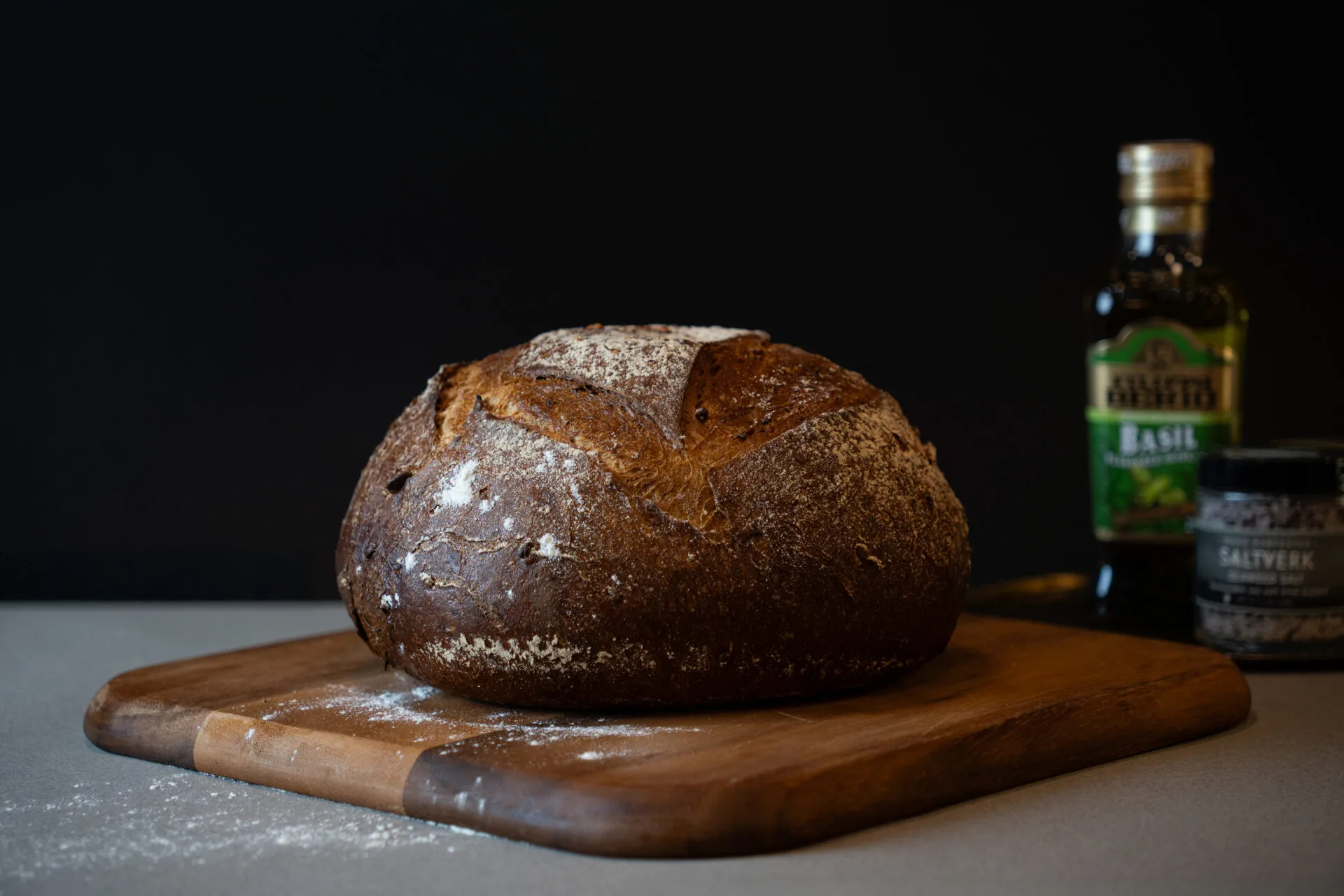 Þetta sérstaka súrdeigsbrauð er bakað af mikilli umhyggju og nýtir sér kosti langrar kælihefunar sem gefur því einstaka dýpt í bragði og áferð, auk þess að gera það hollara og auðmeltara. Grunnurinn er vönduð blanda af rúgi, hveiti og durum sem skapar einstaka seiglu og djúpan kornkeim, sem er einkennandi fyrir gott handverksbrauð.